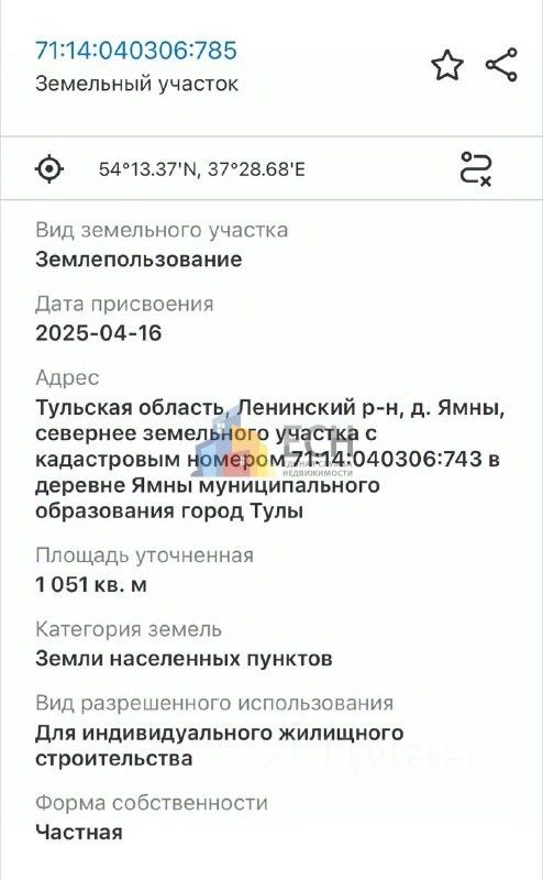 Номер в базе: 60045. В продаже земельный участок для ИЖС в д. Ямны! Площадь 1051м2