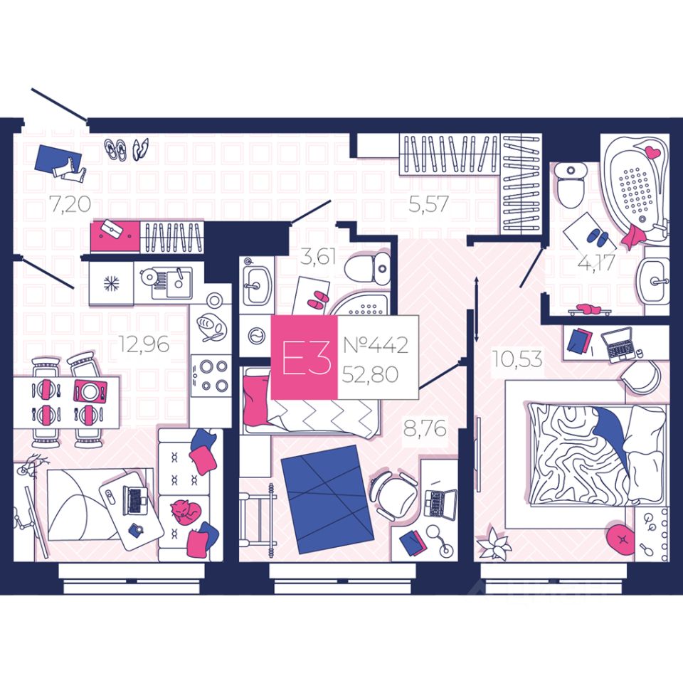 Общая площадь52,8 м2