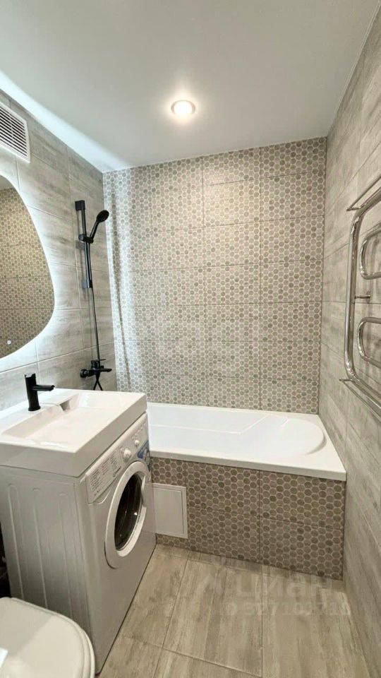 Сан узел раздельный, облицован плиткой.