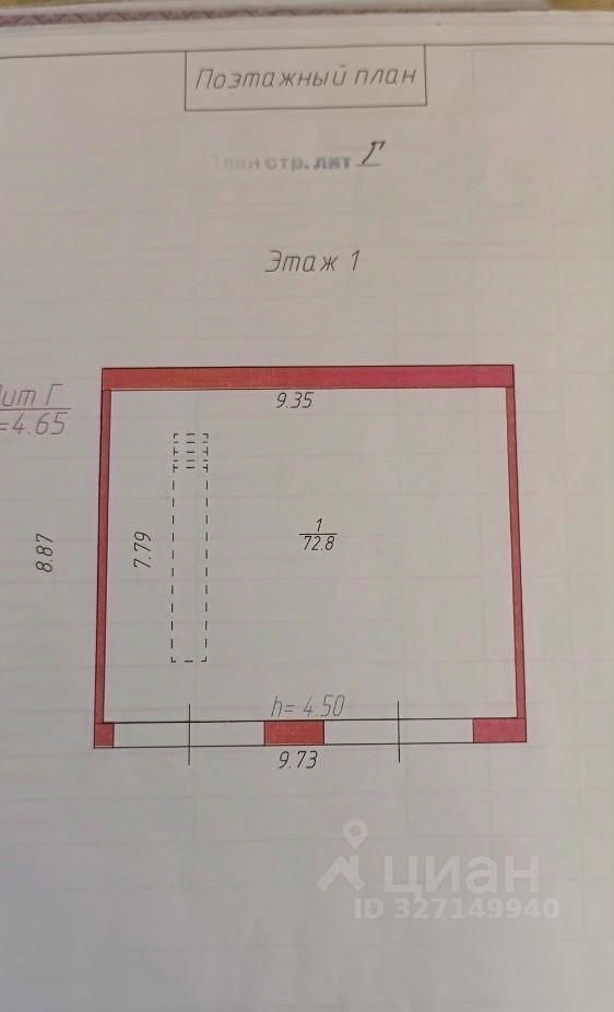 Фундамент литой, стены кирпичные, перекрытия железобетонные, 2 ворот, 1 смотровая яма. Объем 401 куб.м. Площадь 86 куб.м. Размеры 8.879.73, высота 4.65 м. Территория охраняемая общая.