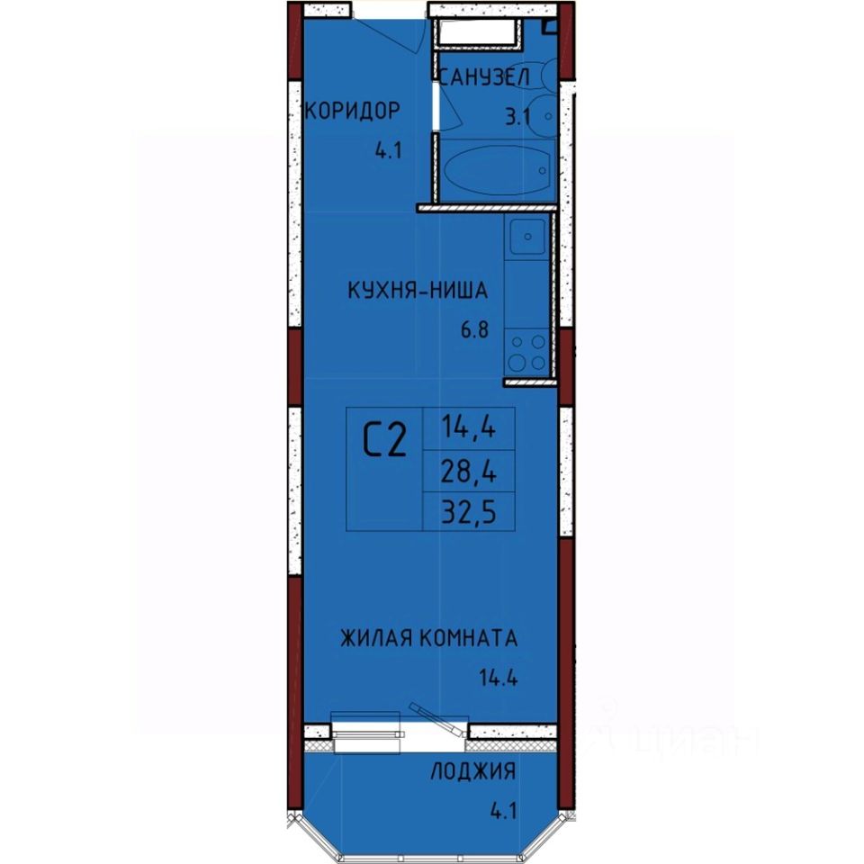 Общая площадь32,5 м2