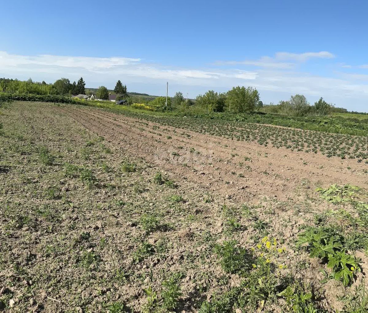 Земля на участке обработана, вспахана.