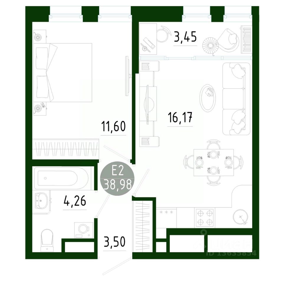 Общая площадь38,98 м2