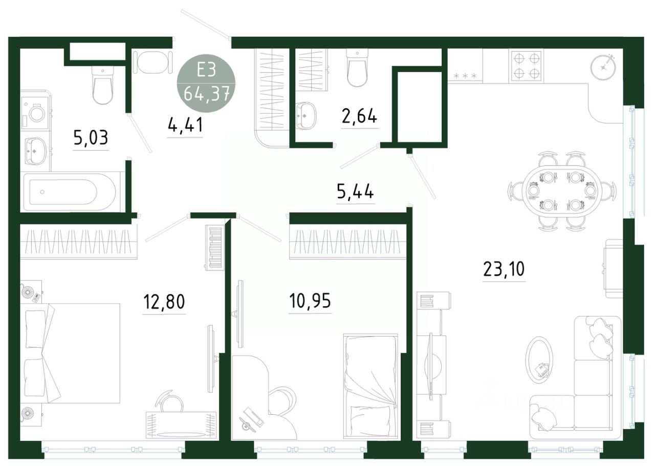 Общая площадь64,37 м2