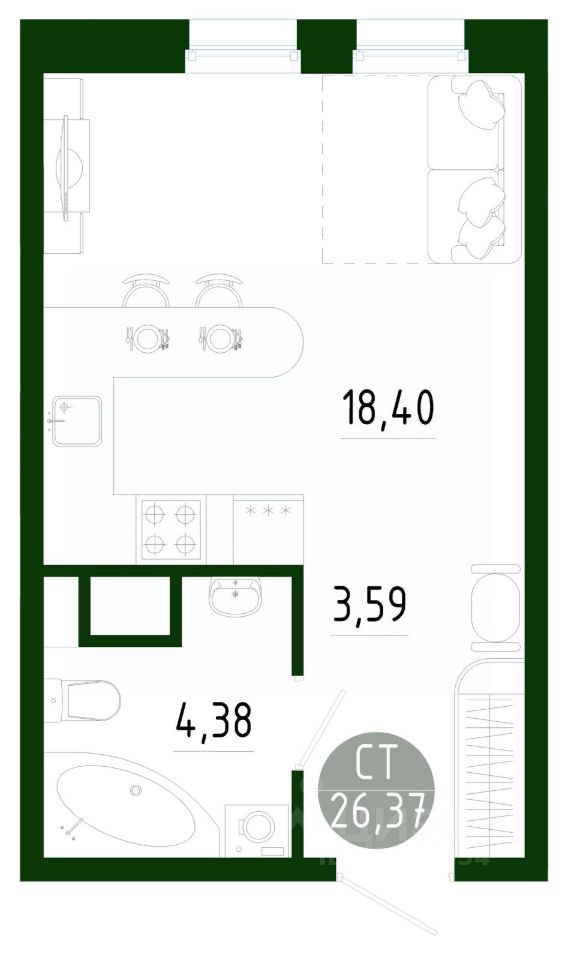Общая площадь26,37 м2