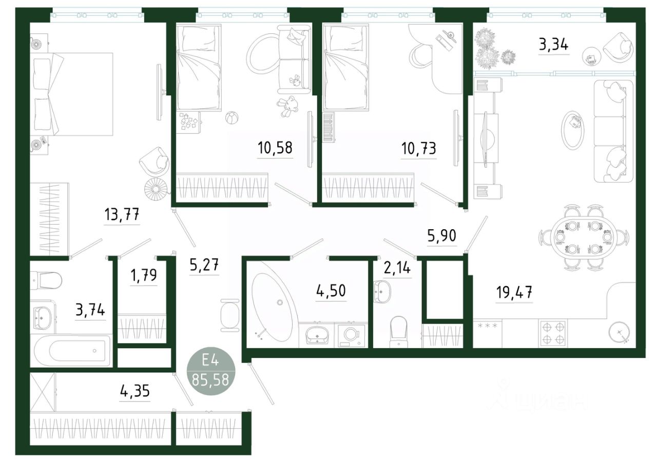 Продаётся 3-комнатная квартира в строящемся доме (Позиция 1), срок сдачи: III-кв. 2029, общей площадью 85.58 кв.м., на 20 этаже. Новый жилой комплекс в г. Тула ''Платон Парк'' от застройщика ООО ''СЗ ''МОНОЛИТ''''