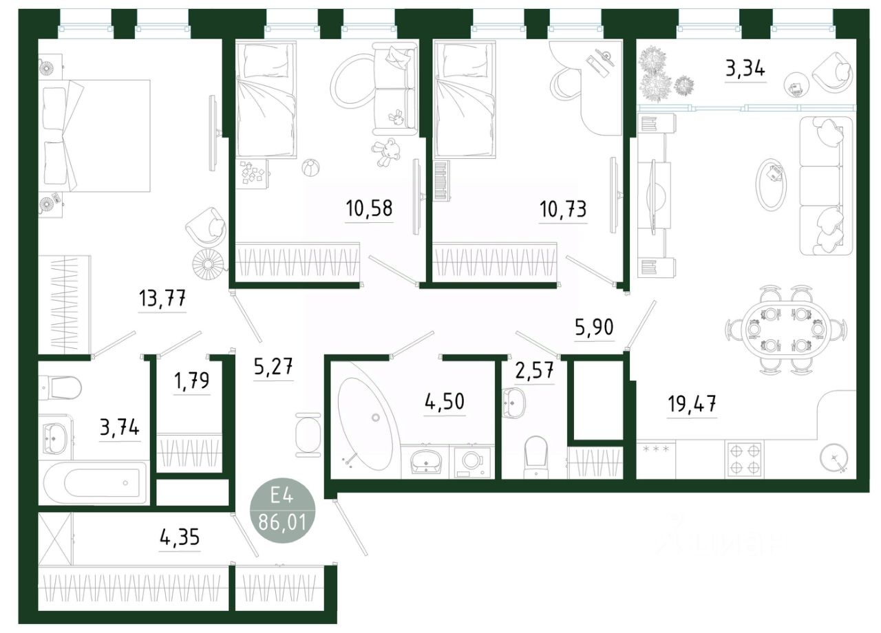 Общая площадь86,01 м2