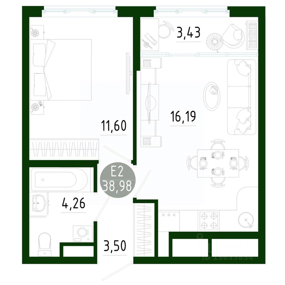 Общая площадь38,98 м2