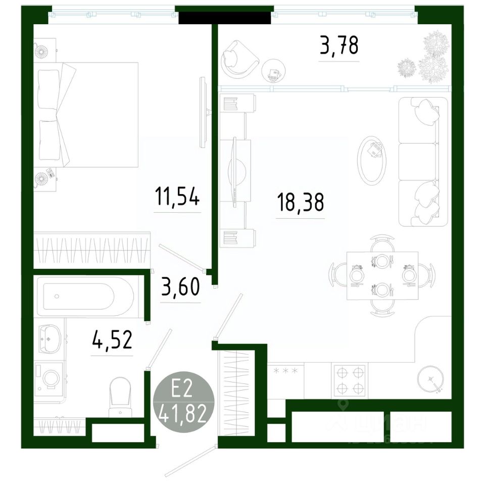 Общая площадь41,82 м2