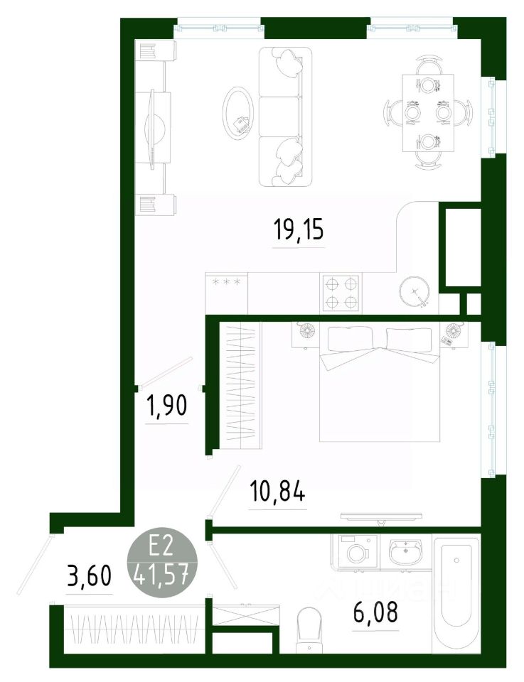 Общая площадь41,57 м2