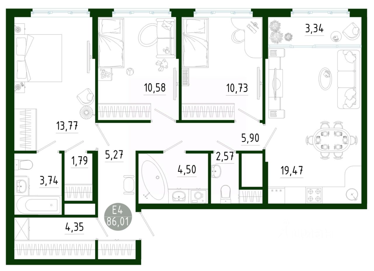 Общая площадь86,01 м2