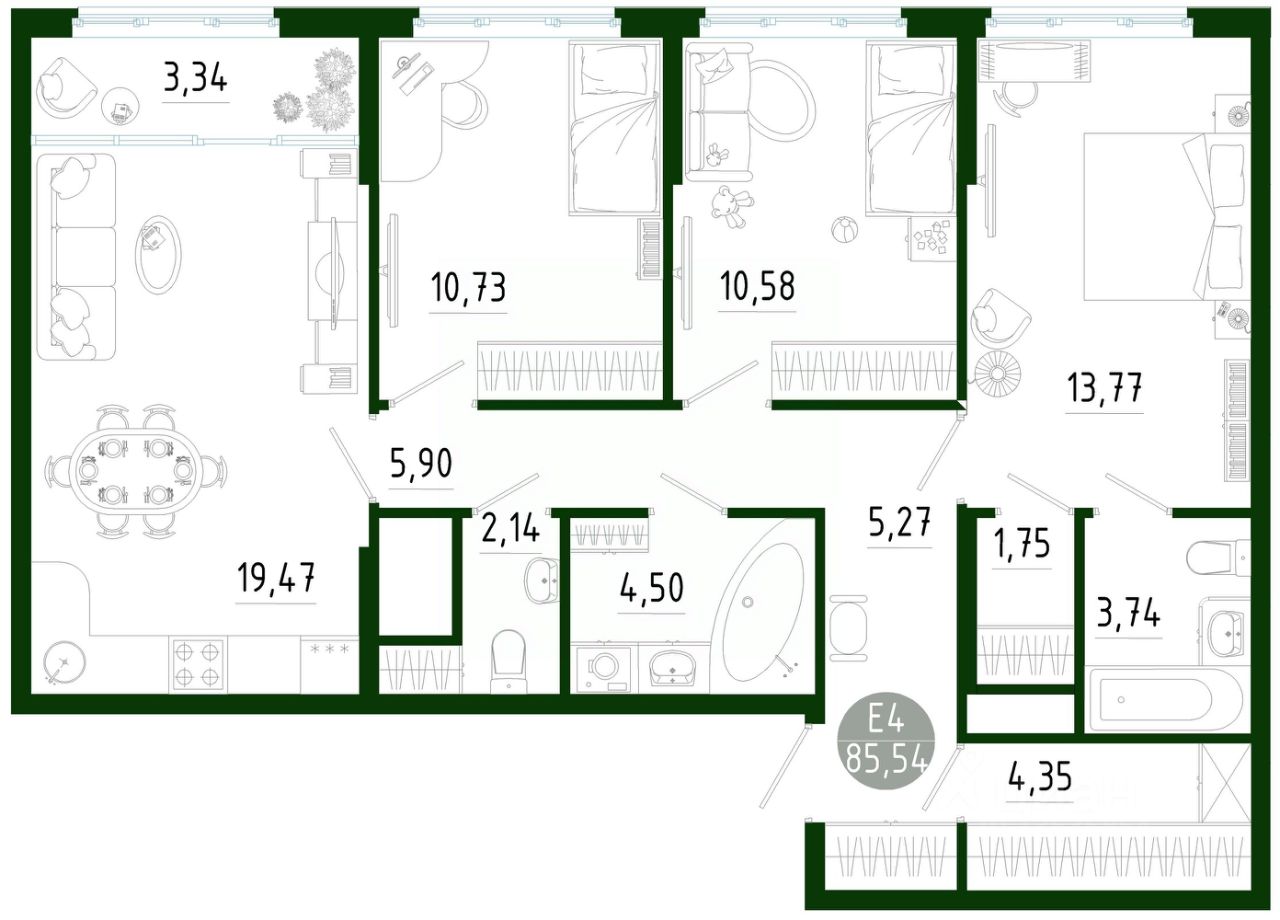 Общая площадь85,54 м2