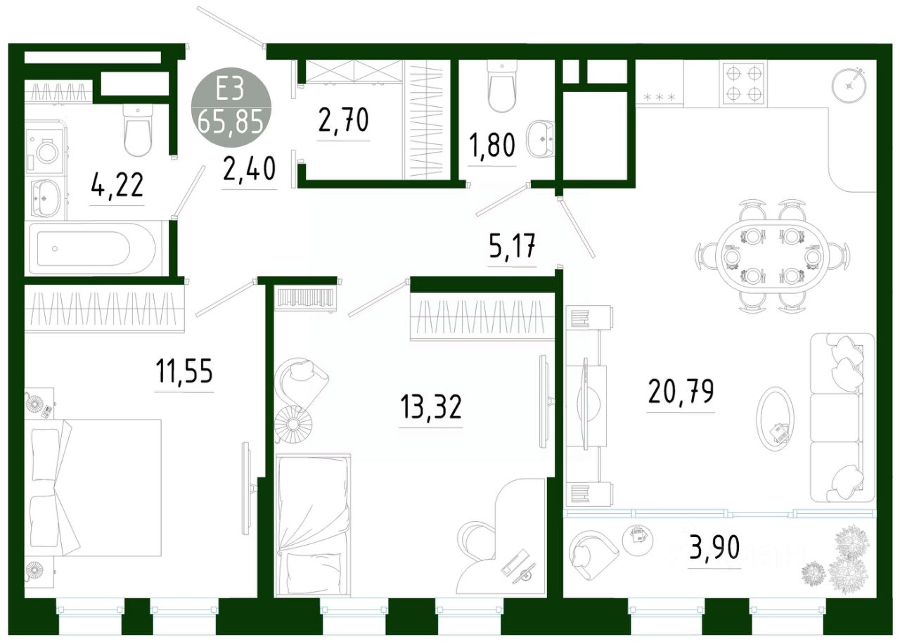 Общая площадь65,85 м2
