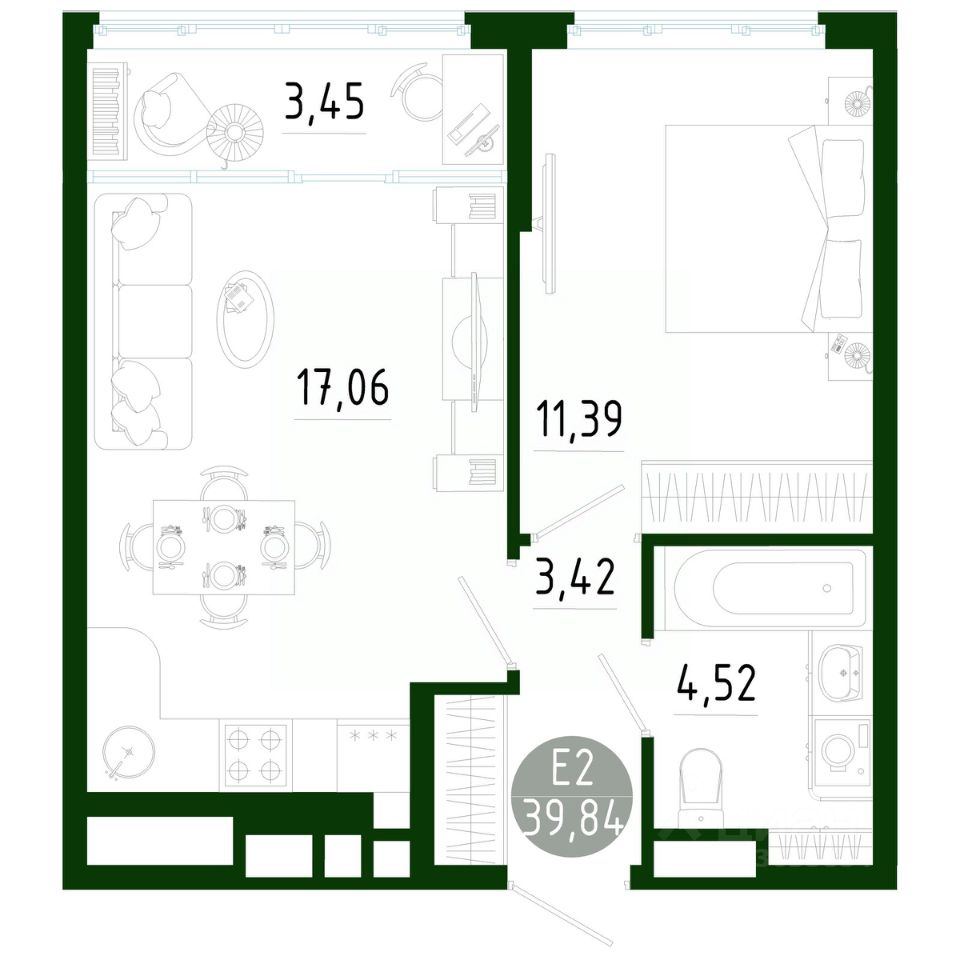 Общая площадь39,84 м2