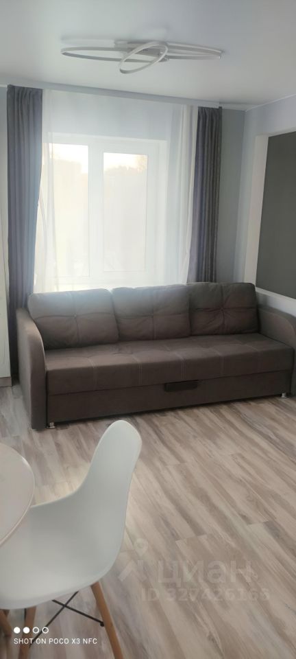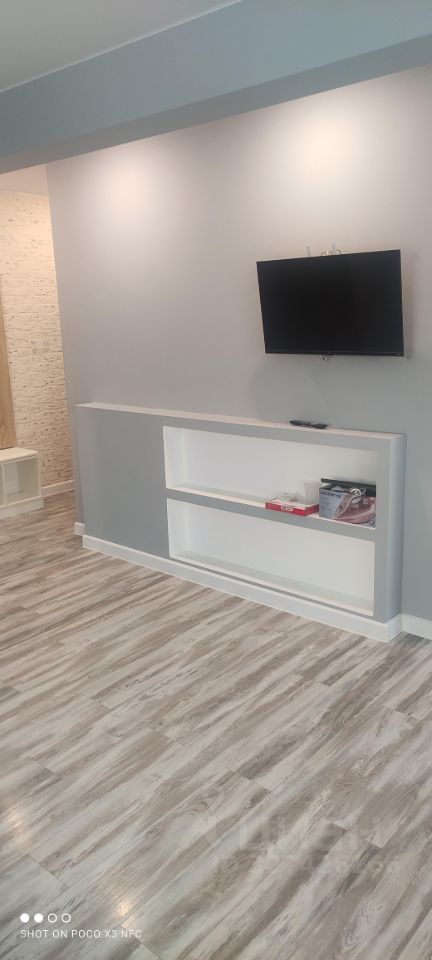 Квартира расположена на 4 этаже панельного дома. В квартире выполнен свежий евро ремонт. Просторная жилая комната площадью 17 м² оборудована телевизором и мебелью для комфортного проживания.
