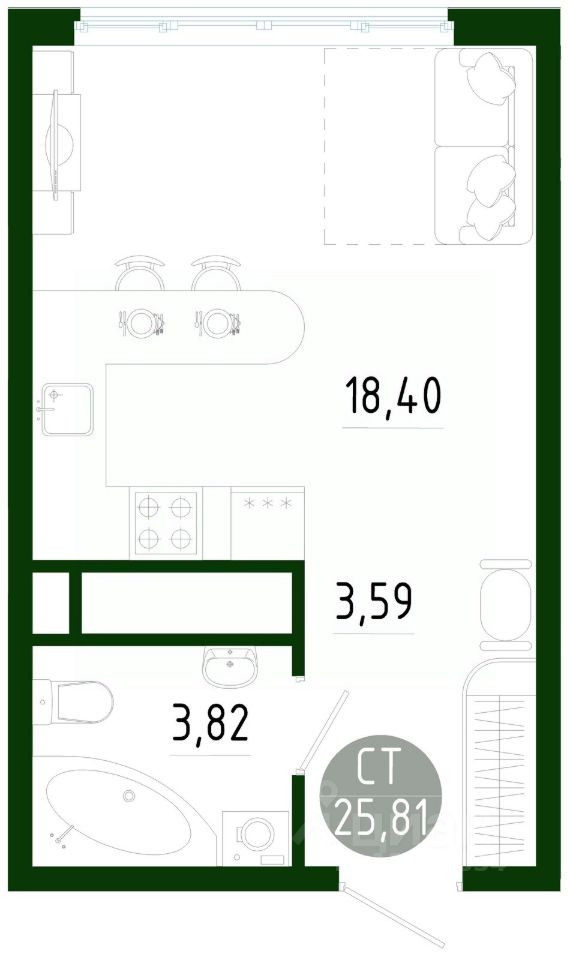 Общая площадь25,81 м2